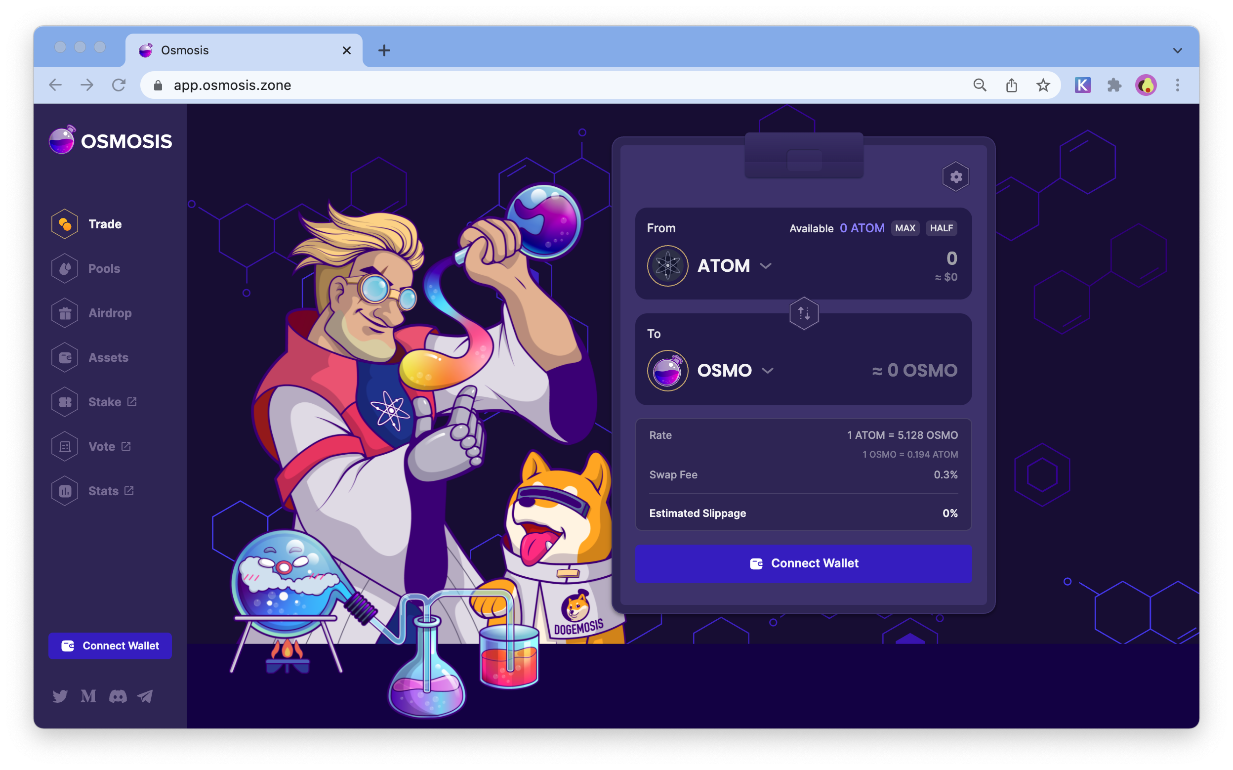 Osmosis is the premier cross-chain DeFi hub. As the liquidity center and primary trading venue of Cosmos – the open, emergent ecosystem of sovereign Layer 1s connected with the Inter-Blockchain Communication protocol (IBC) – it is the access point for the wide world of appchains, the gateway to the interchain. As IBC continues to explode – with more than 50 blockchains connected and dozens more in development, including dYdX chain, and with teams working to enable IBC on Avalanche, Polkadot, NEAR, and others, potentially even Ethereum – Osmosis will be there to welcome new users, developers, and protocols to the Internet of Blockchains.